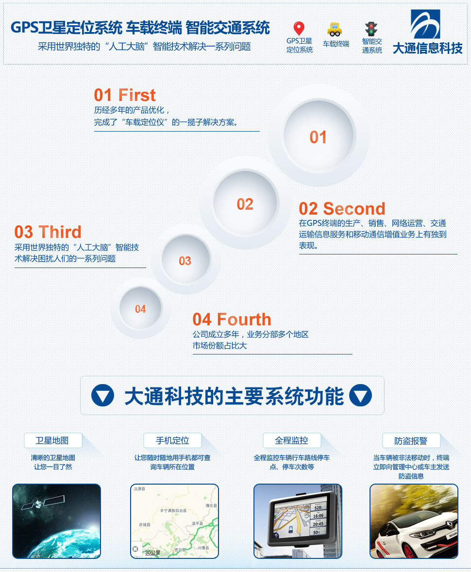 合肥大通信息科技有限公司是一家以研發(fā)、生產(chǎn)、銷售、服務(wù)為一體的綜合型公司。公司注重于車輛定位系統(tǒng)的研發(fā)、信息咨詢及技術(shù)服務(wù);公司歷經(jīng)多年的產(chǎn)品優(yōu)化,完成了“車載定位儀”的一攬子解決方案。 公司以GPS衛(wèi)星定位系統(tǒng)、車載終端、智能交通系統(tǒng)為主要研發(fā)對(duì)象,并繼續(xù)促進(jìn)科研成果產(chǎn)業(yè)化,在GPS終端的生產(chǎn)、銷售、網(wǎng)絡(luò)運(yùn)營、交通運(yùn)輸信息服務(wù)和移動(dòng)通信增值業(yè)務(wù)上有獨(dú)到表現(xiàn)。 公司產(chǎn)品采用“人工大腦”智能技術(shù)解決汽車調(diào)度、軌跡、里程、油耗統(tǒng)計(jì)、防盜等困擾人們的一系列問題。 公司現(xiàn)在業(yè)務(wù)分布情況:安徽合肥、蕪湖、滁州、六安、宿州、阜陽、黃山、池州、銅陵、安慶、馬鞍山、宣城、亳州、巢湖、蚌埠、淮南、淮北、江蘇南京、福建廈門、江西南昌、湖北武漢、四川成都等各個(gè)地方。